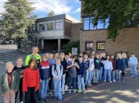 In der nächsten Unterrichtsstunde wurden wir vor die Schule zu einem Bus geschickt, der auf uns wartete und wo uns Frau Mathweis als erstes den Busfahrer vorstellte. Zuerst sollten wir in den Bus stürmen, um zu sehen, wie blöd und zudem gefährlich das ist. Danach zeigte uns der Busfahrer die einzelnen Funktionen im Bus. Im Anschluss daran fuhren wir von der Schule aus zum Bahnhof, auf dem Hinweg erklärte er uns alles gut. Als wir dann wieder an der Schule angekommen waren, zeigte uns der Busfahrer noch, wie gefährlich es ist, bei einer Vollbremsung hinten in der Mitte zu sitzen. Dann gaben wir am Schluss dem Busfahrer ein dickes Dankeschön.