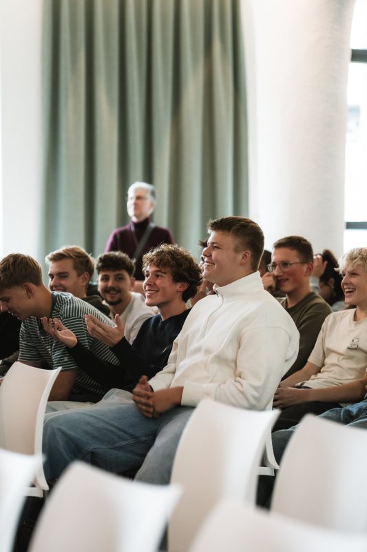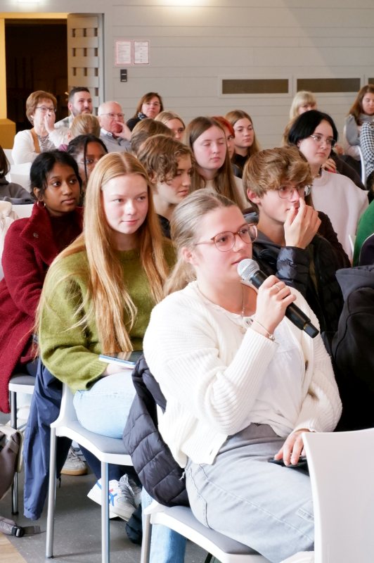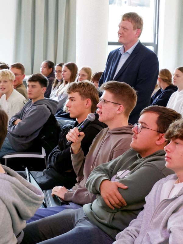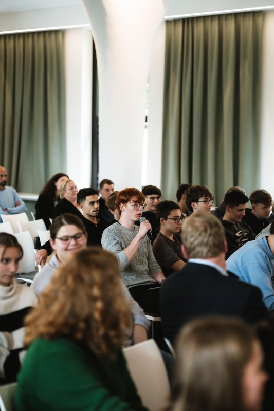 Die Diskussion beschäftigte sich mit der Frage, wie Unternehmen heute junge Menschen erreichen können. Schnell wurde deutlich, dass vor allem Transparenz, Authentizität und Werteorientierung entscheidende Faktoren sind. Unsere Schülerinnen und Schüler brachten sich aktiv ein, stellten Fragen und verdeutlichten, welche Erwartungen ihre Generation an Unternehmen stellt.