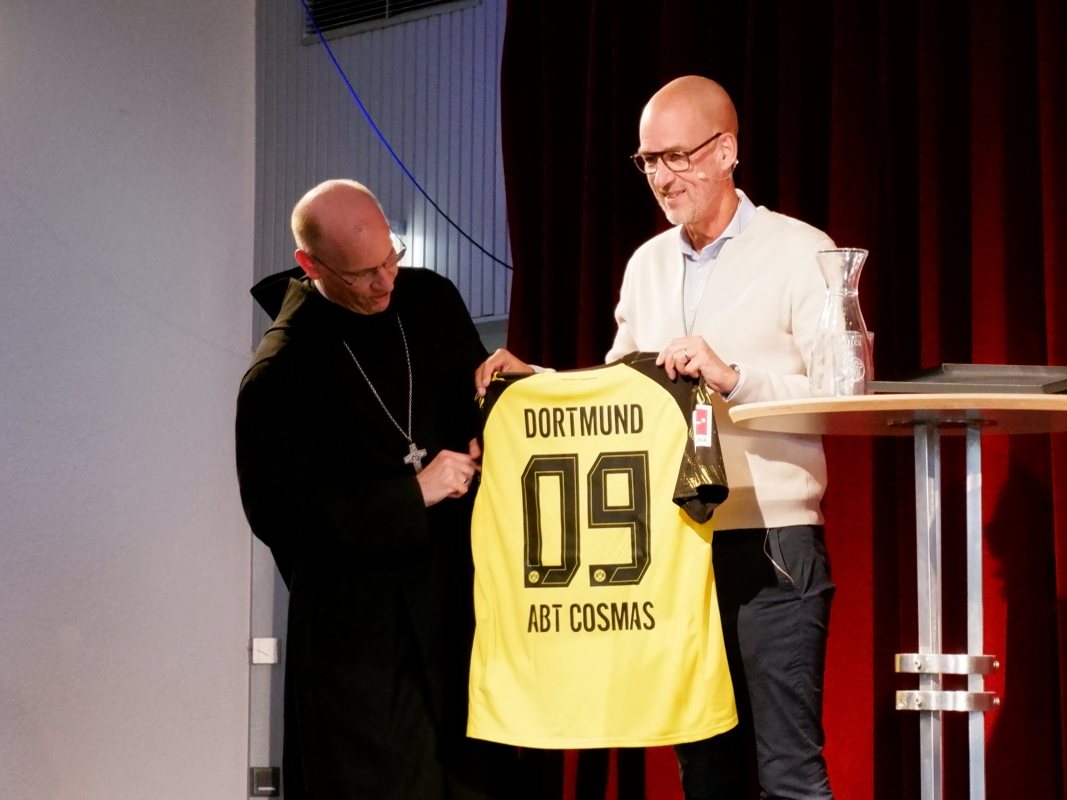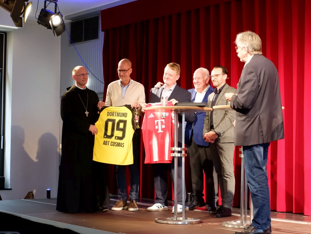 Moderiert wurde die Gesprächsrunde von Jörg Bartmann (Sauerland Initiativ), unterstützt durch Marius Beitzel, Lehrer an unserer Schule. Für einen feierlichen Auftakt sorgten Abt Dr. Cosmas Hoffmann (OSB) sowie Frank Höhne, Geschäftsführer von Sauerland Initiativ.