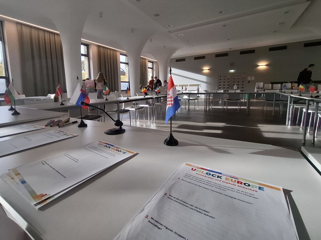 Im mobilen Escape-Game "Unlock Europe" der Bundeskanzler-Helmut-Schmidt-Stiftung lernten die Schülerinnen und Schüler der Klasse 9a von Frau Röllecke am 29.10.2025 - zunächst in Kleingruppen - spielerisch die EU als Friedensprojekt, Wertegemeinschaft und Sicherheitsgarantin kennen.