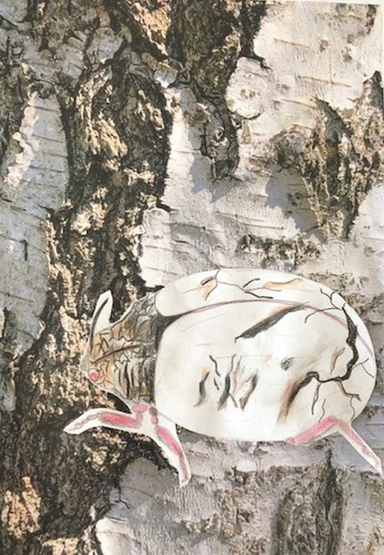 Die Schülerinnen und Schüler der beiden fünften Klassen machen weiterhin Kunst in und mit der Natur. Dieses Mal sollten sie den Mimese-Effekt bei Käfern nachahmen. Als Mimese wird bezeichnet, wenn sich Lebewesen in ihrem Aussehen ihrem Lebensraum angepasst haben.