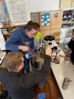 An dieser Stelle möchten wir Moritz Zipro (Leiter der Brautechnik) und Hannes Böhm (Abitur 2024 und dualer Student für Getränketechnologie in Verbindung mit einer Ausbildung zum Brauer und Mälzer) von der Brauerei Veltins für ihre tatkräftige Unterstützung danken. Hannes ließ es sich nicht nehmen, uns am Brautag persönlich zu besuchen und sein Fachwissen mit den Schülern zu teilen.