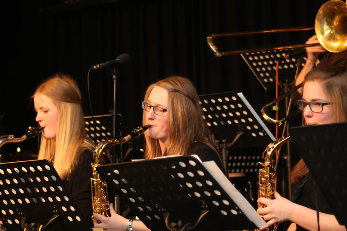 Am Freitag, dem 31. März, um 19.30 Uhr gab es „Good Times“ mit Jazz und Popmusik in der Aula unseres Gymnasiums. Die Schülerinnen und Schüler in der Benni Big Band und im Schulchor hatten ein abendfüllendes Programm eingeübt, in dem sie Musik in verschiedenen Jazz-Stilen, in Latin- und Funk-Rhythmen, aber auch Rockmusik und einige schöne Pop-Balladen spielten und sangen. Von ältesten bekannten Swing-Nummern über rockige Filmmusik bis hin zu neuester Popmusik reichte die Vielfalt des Programms, mit Musik von Glenn Miller und Count Basie über „The Mamas And The Papas“ und Lalo Schifrin („Mission Impossible“) bis hin zu „The Lion King“ und Christina Perris „Jar Of Hearts“.
