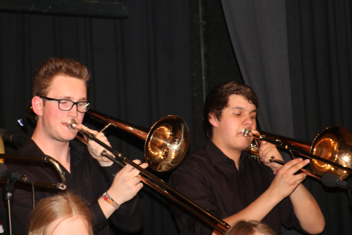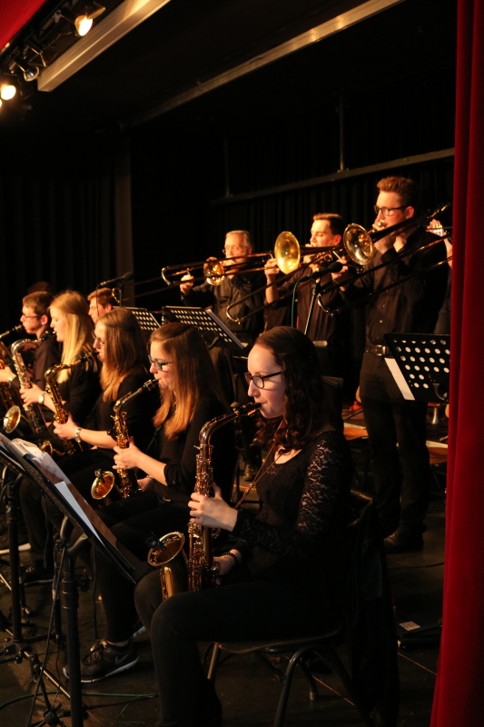 Das war ein schönes Konzert mit entspannter Unterhaltungsmusik und guten Jazz-Solos. Dazu haben auch einige „Ehemalige“ der Benni Big Band beigetragen, so dass sie in der Standardbesetzung auftreten und „ganz schön aufdrehen“ konnte, mit der bewährten Unterstützung von Willi Hegener, der die Soundtechnik leitete und die „spezielle“ Akustik unserer Aula wieder einmal bezwingen konnte.