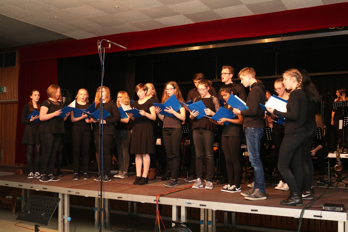 Es kamen überraschend viele Zuhörer, Eltern, (ehemalige) SchülerInnen, KollegInnen und auch Big Band – Interessierte, und unsere Musiker und Sängerinnen haben natürlich ihr Bestes gegeben. Die Benni Big Band ließ ein präzises Zusammenspiel bei leichtem Swing bis fetzigem Funk hören, und der Chor eine saubere und transparente Mehrstimmigkeit bei vollem Klang, einfühlsam begleitet von der Rhythmusgruppe der Big Band. Die Solisten sorgten immer wieder für „Szenenapplaus“. Vivien Geiß sang solistisch sehr gefühlvoll die romantische Ballade „Can You Feel The Love Tonight“ aus dem Musical „The Lion King“.
