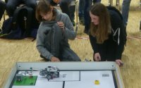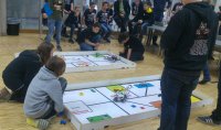 Es wurde klar, dass es ein Stechen geben musste. Ein anderes Team aus Lünen hatte die gleiche Punktzahl wie unser Team. Das Stechen verlief äußerst positiv für das Team RoboBennis.