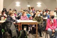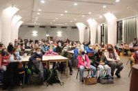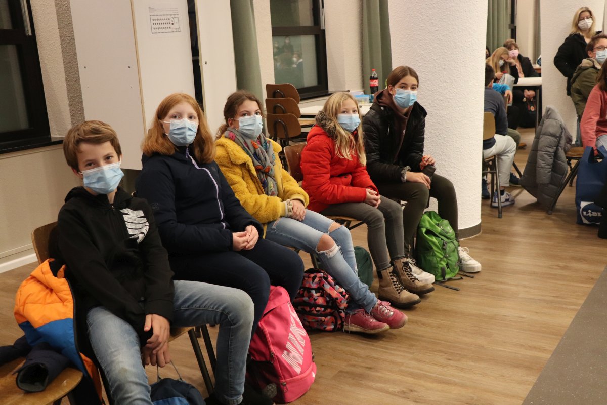 So fanden sich am Freitagabend rund 140 Schülerinnen und Schüler in der Aula ein, um nach der Begrüßung durch unseren Schulleiter Herrn Deckers zunächst eine kleine Einführung in den Wettbewerb zu bekommen. Frau Hatting und Frau Szafranski erklärten den Ablauf des Abends.