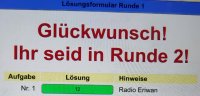 Um 20:35 Uhr war es endlich soweit. Nach mehreren Abgleichen der Primzahlen wurden endlich alle richtigen Ergebnisse eingegeben und die Kinder konnten in die zweite Runde starten, die wieder so ablief wie Runde 1. Es wurden knifflige Sudokus mit Milchkannen gelöst, Sechsecke gezeichnet und und und. Um 22 Uhr war der Wettbewerb für die Klassen 5 und 6 beendet. Zu diesem Zeitpunkt konnten etwa die Hälfte der Ergebnisse aus Runde 2 korrekt eingegeben werden. Wer noch Lust hatte, zuhause weiterzugrübeln, konnte dies tun. Der Wettbewerb lief offiziell noch bis 8 Uhr am Samstagmorgen.