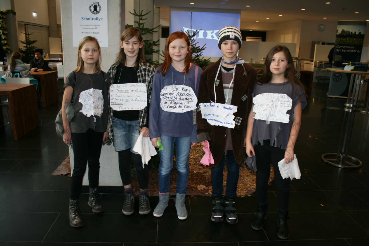 So musizierten Schülerinnen und Schüler vor Einkaufsmärkten ihrer Orte, machten auf die Situation der Straßenkinder in Brasilien in ihren Nachbarschaften aufmerksam und sammelten für Projekte wie Unterstützung mit Lernmaterialien. Sie bastelten und backten und boten ihr Selbstproduziertes an. Am Tag der offenen Tür putzten Kinder der 5er Klassen aus Solidarität mit den Straßenkindern den Besuchern die Schuhe.