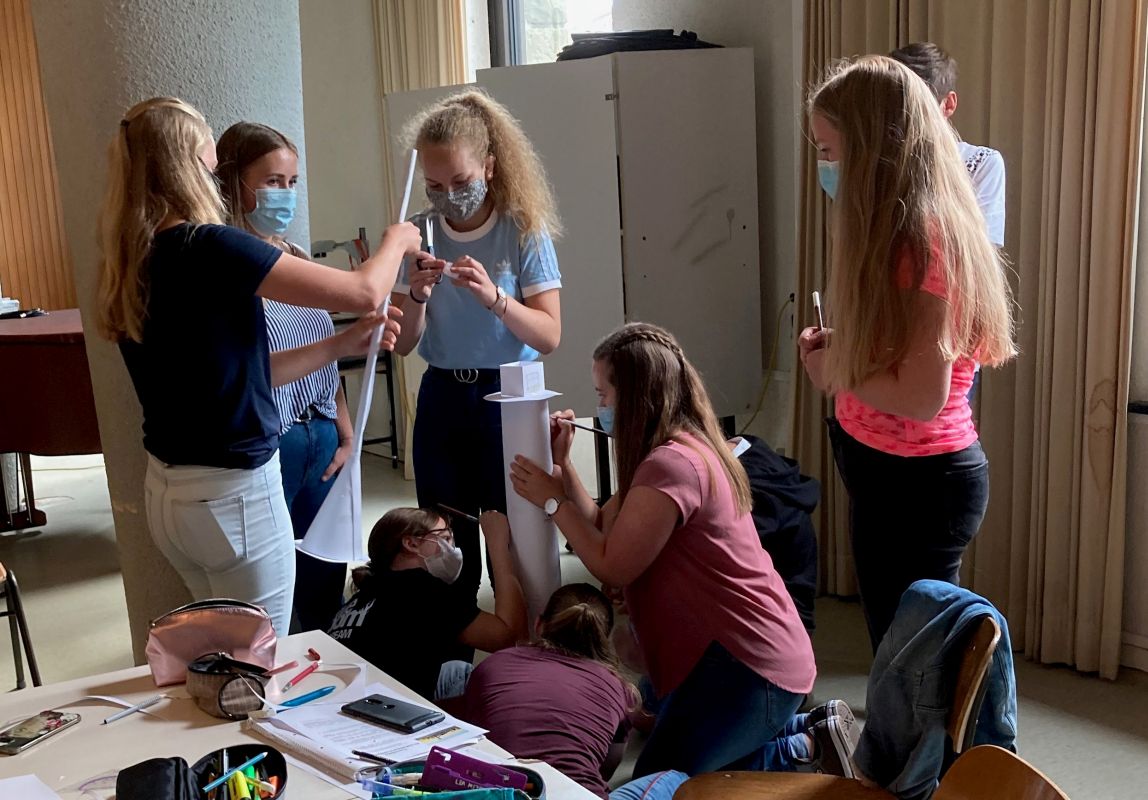 Zum Abschluss wurde die Stufe kreativ und jedes Team baute aus einem Din-A0-Bogen einen möglichst hohen Turm. Per Online-Voting wurden die besten Türme ausgewählt und prämiert.