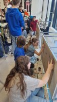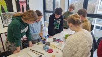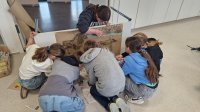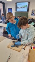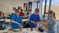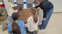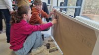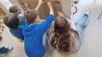 Am Montag, den 17 März haben die Schülerinnen und Schüler dazu zunächst Farben aus selbst mitgebrachten Materialien wie zum Beispiel Kohle, Gras, Blüten, Beeren und Erde angerührt und dann die Wand in der „Familienhöhle“ gestaltet. Was die Familie Huah, Ungu, Wawa, Tonga und Bong sonst noch so gestalten, wird folgen.