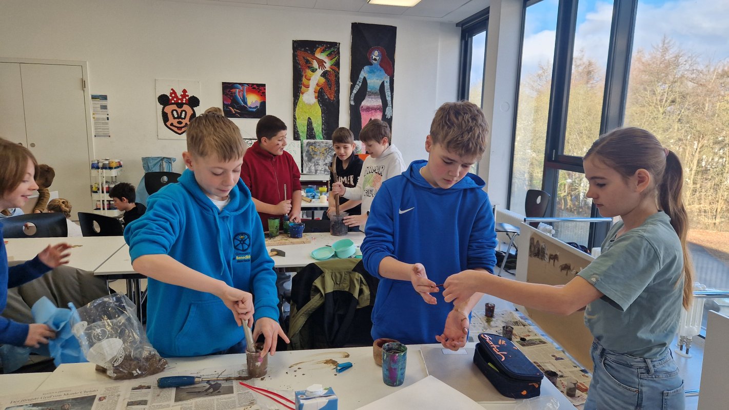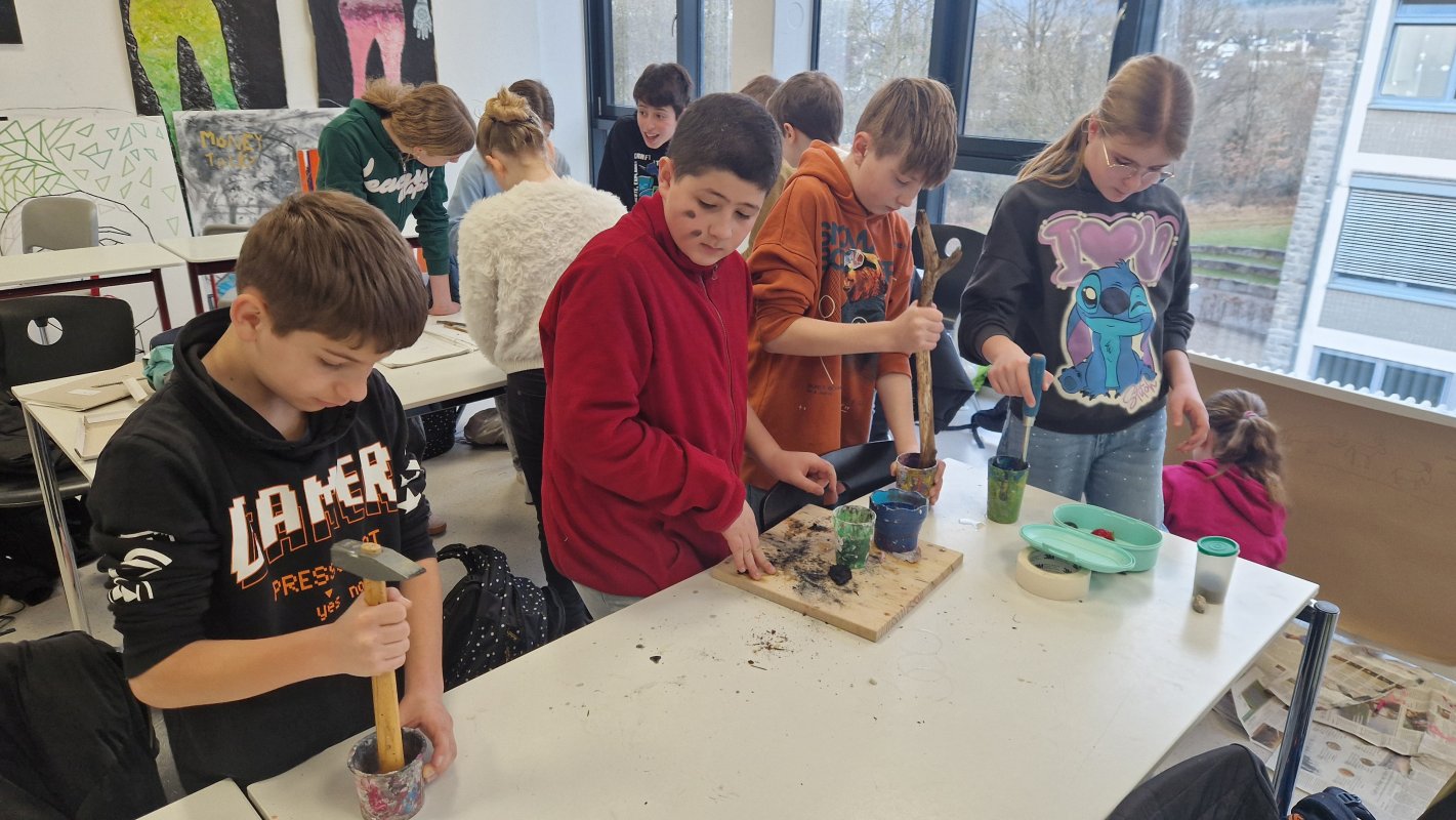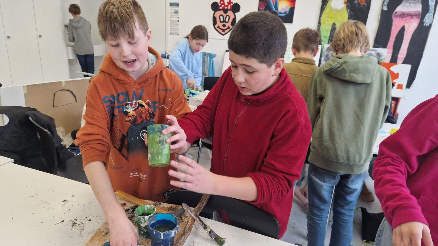 Wie haben die Menschen damals Bilder an Höhlenwände gemalt? Was haben sie für Motive gehabt? Die Klasse 6a hat im Kunstunterricht eine Reise in die Vergangenheit gemacht. In Familienclans gestalten sie in den nächsten Wochen Steinzeitkunst.