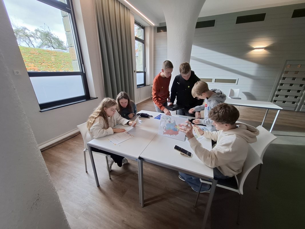 Im mobilen Escape-Game "Unlock Europe" der Bundeskanzler-Helmut-Schmidt-Stiftung lernten die Schülerinnen und Schüler der Klasse 9a von Frau Röllecke am 29.10.2025 - zunächst in Kleingruppen - spielerisch die EU als Friedensprojekt, Wertegemeinschaft und Sicherheitsgarantin kennen.