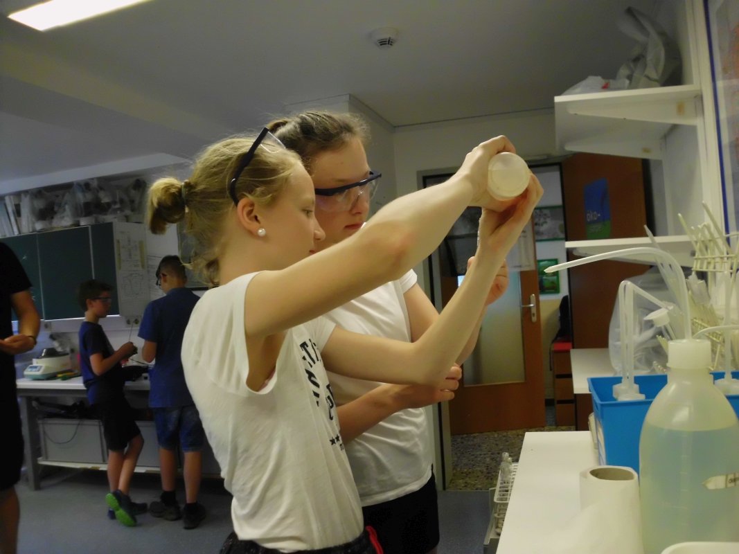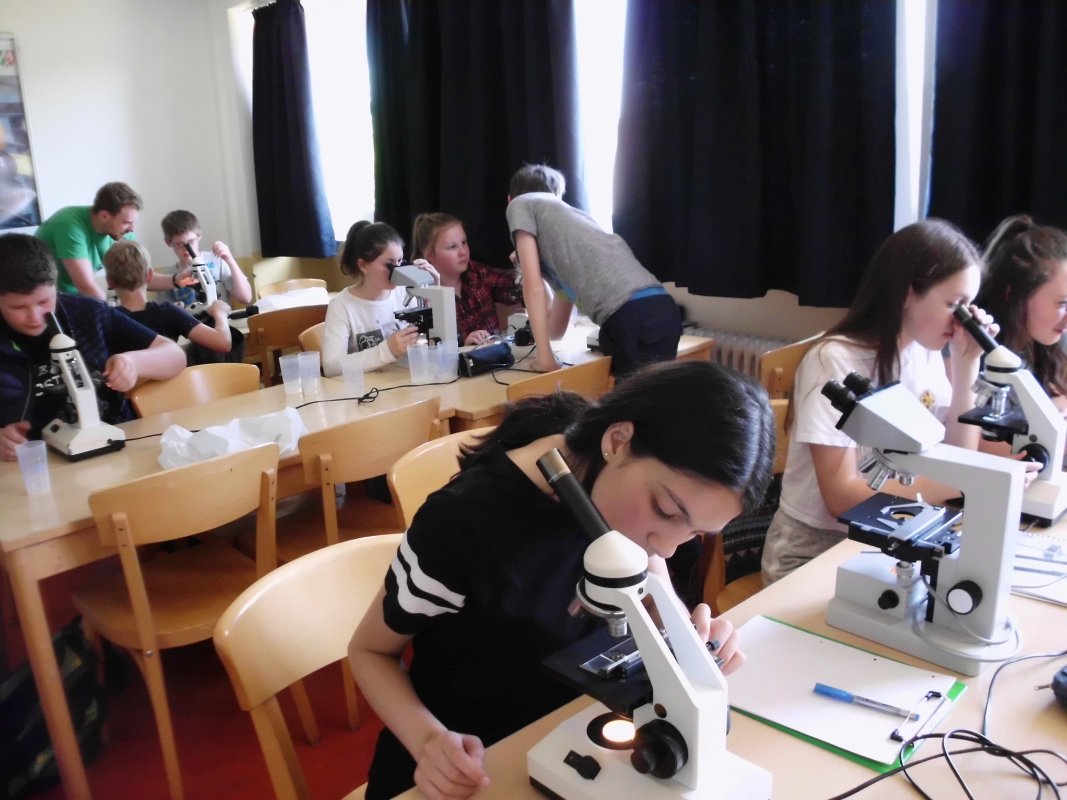 Danach ruderten wir wieder zurück, aßen zu Mittag und genossen noch ein bisschen Freizeit draußen im strahlenden Sonnenschein, bevor wir in zwei Gruppen aufgeteilt wurden, damit die eine Gruppe die Planktonproben am Mikroskop und die andere Gruppe das Wasser auf Mineralstoffe hin im Labor untersuchen konnte. Nach ca. anderthalb Stunden wechselten wir dann, damit jeder einmal mikroskopiert bzw. im Labor gearbeitet hatte. Dies war eine sehr tolle Erfahrung, weil man generell sehr viel selber ausprobieren konnte.Nachdem die Mikroskope wieder ordentlich im Labor verstaut waren, gingen wir zusammen zur Promenade Eis essen. Danach hatten wir freie Zeit, und während sich manche in der Megametropole Langscheid verliefen, gingen andere zurück zur Jugendherberge, um gegen eine weitere Klasse, die dort ihre Klassenfahrt verbrachte, Fußball zu spielen. Nach dem Abendessen spielten wir draußen wieder ein paar legendäre Spiele („Trichter“ - mehr wird nicht gesagt), bevor es nach der Auswertung unserer Forschungen am Mittwochmorgen wieder nach Meschede ging.