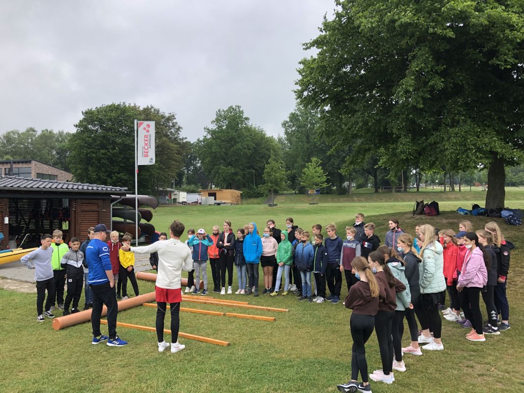 Als wir am Mittwoch in unserer Jugendherberge am Möhnesee angekommen sind, haben wir zuerst unsere Zimmer bezogen. Danach gab es ein gemeinsames Mittagessen. Am frühen Nachmittag haben wir uns auf den Weg zum Kanufahren gemacht. Leider war das Wetter nicht ganz so gut, es hat geregnet und war ein bisschen windig. Nach einer kurzen Pause am Ufer, mussten wir wieder in die Boote und zurückfahren. Als die Kanufahrt vorbei war, sind wir ziemlich nass zur Jugendherberge zurückgegangen. Es gab dann Abendessen und anschließend hatten wir Freizeit.