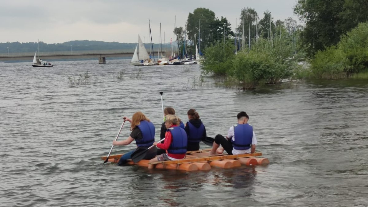 Am Donnerstag, dem 09.06.2022, fand der Haupttag unserer Klassenfahrt statt. Die erste Aktion an diesem Tag war das Floßbauen. Jede Gruppe schaffte es in circa 2 Stunden ein solches Floß zu bauen. Als wir ins Wasser gingen, wackelte es sehr und wir wurden alle ordentlich nass. Allerdings ist kein einziges Floß untergegangen!